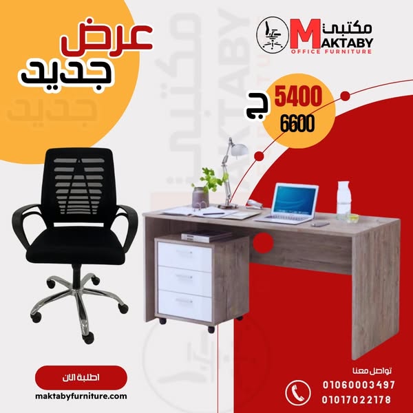 مكتب عملي بتصميم مودرن مع كرسي شبك دوار – عرض خاص
