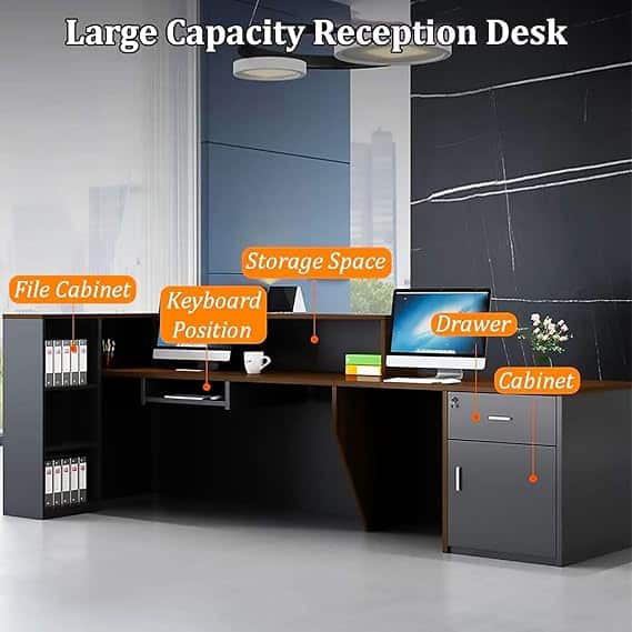 RC-0005-مكتب استقبال خشبي حديث مع عداد – أدراج قابلة للقفل
