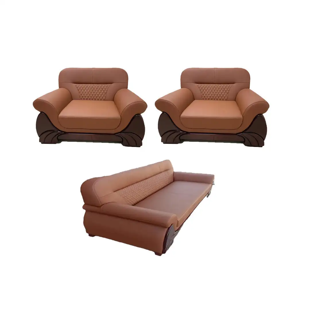 طقم انتريه استقبال مكتبي من كنبة 3 فرد وكرسي فوتيه مصنوع من خشب زان أحمر طبيعي عالي الجودة